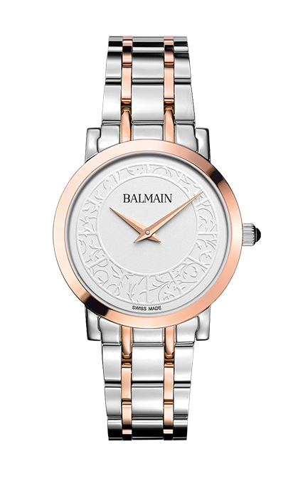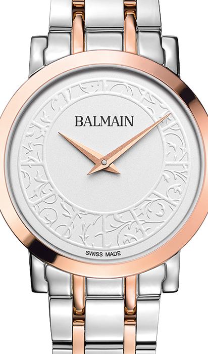 Balmain, Laelia, Edelstahl Bicolor, Weiss mit Arabesken, Saphirglas, Edelstahlband Bicolor, Quarz