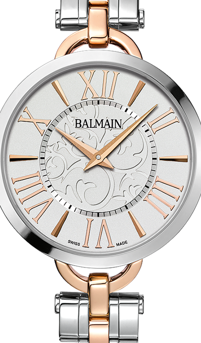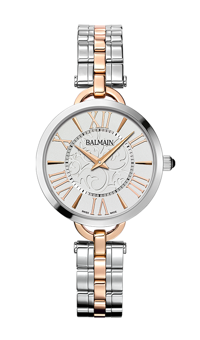 Balmain, Orithia, Edelstahl Bicolor, silbriges mit Arabesken, Saphirglas, Edelstahlband Bicolor, Quarz