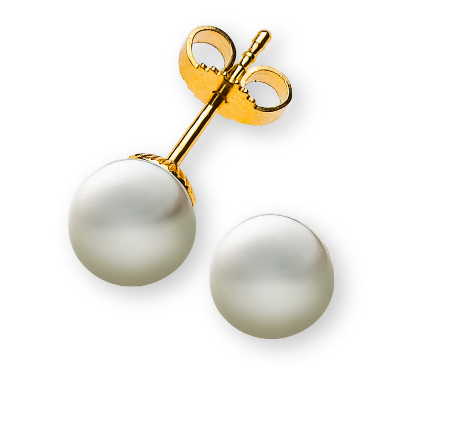 Perlohrringe Gelbgold 750, SWZPerle rund, weiss, 7.0