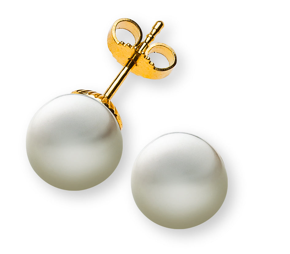 Perlohrringe Gelbgold 750, SWZPerle rund, weiss, 8.5