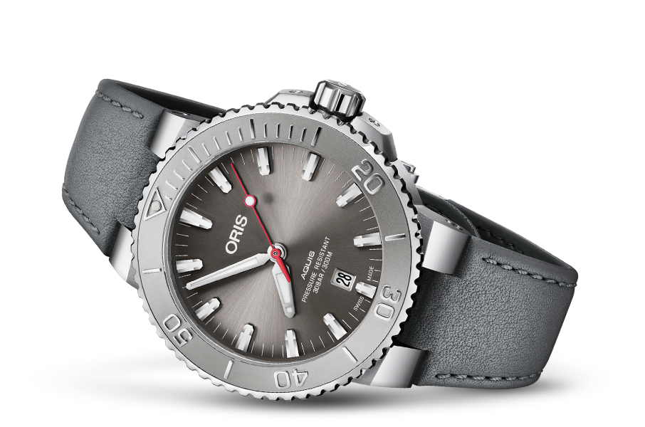 Aquis Date Relief, Grey, Leather Strap