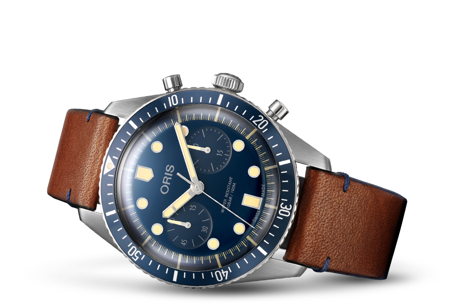 Divers Sixty-Five Chronograph Bucherer Blue Editions, Blue, Leather Strap