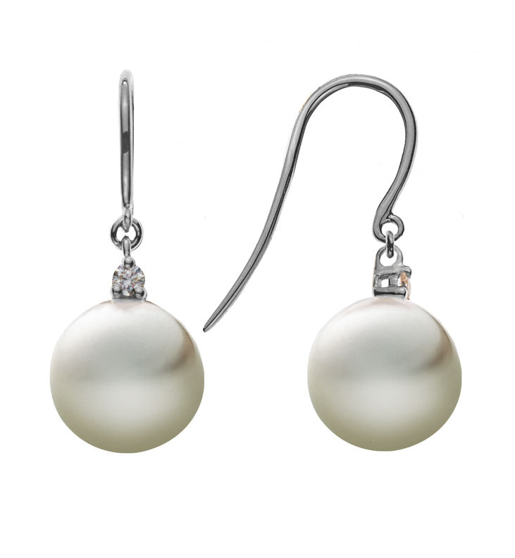 Ohrhänger Weissgold 750, mit weissen Perlen und 2 Brillanten H SI